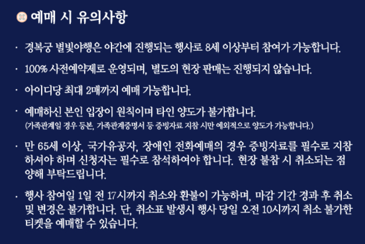 경복궁 야간개장 별빛야행 유의사항