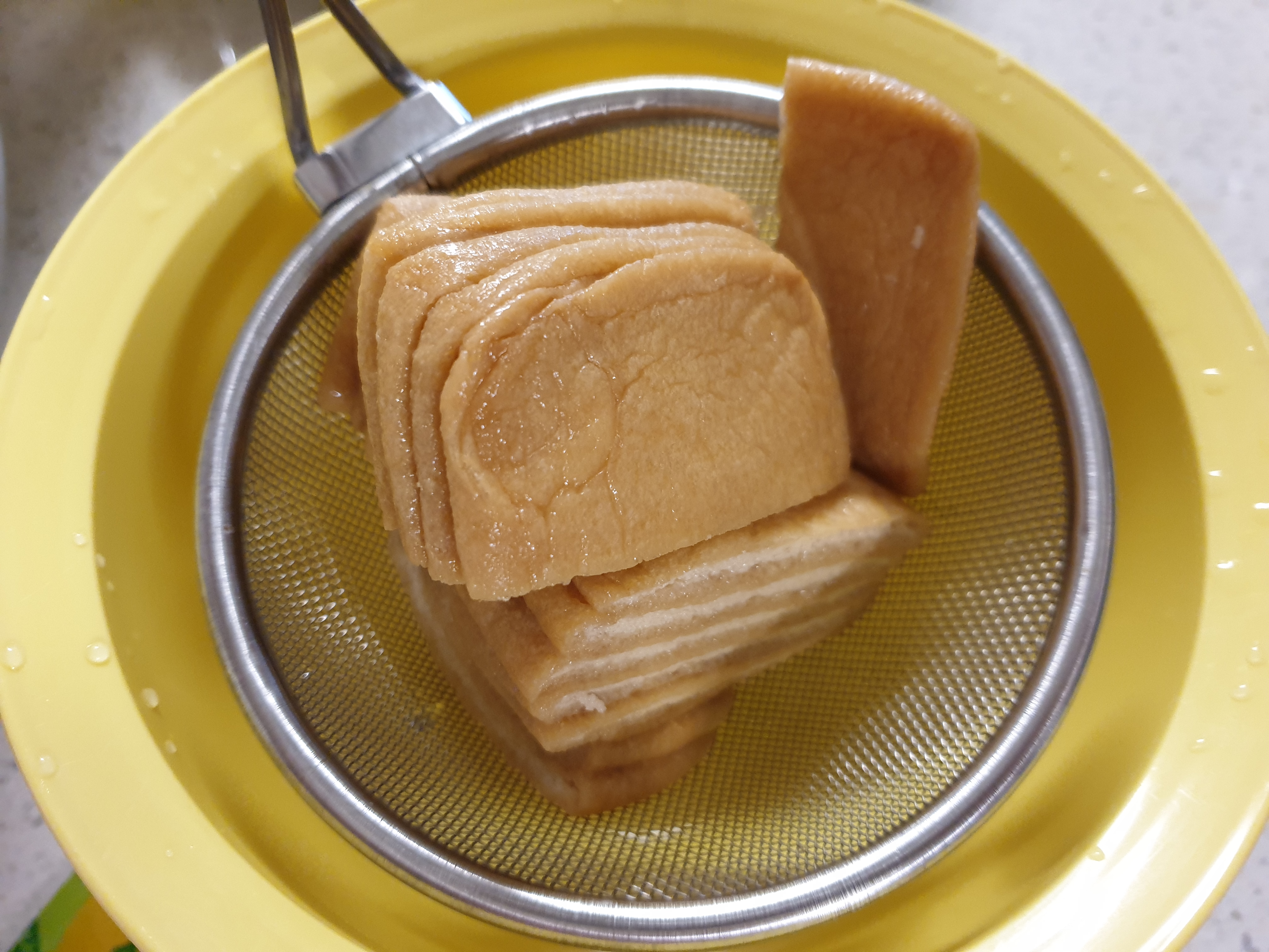유부는 미리 체에 받쳐 함께 들어있던 물기를 제거해 주세요!