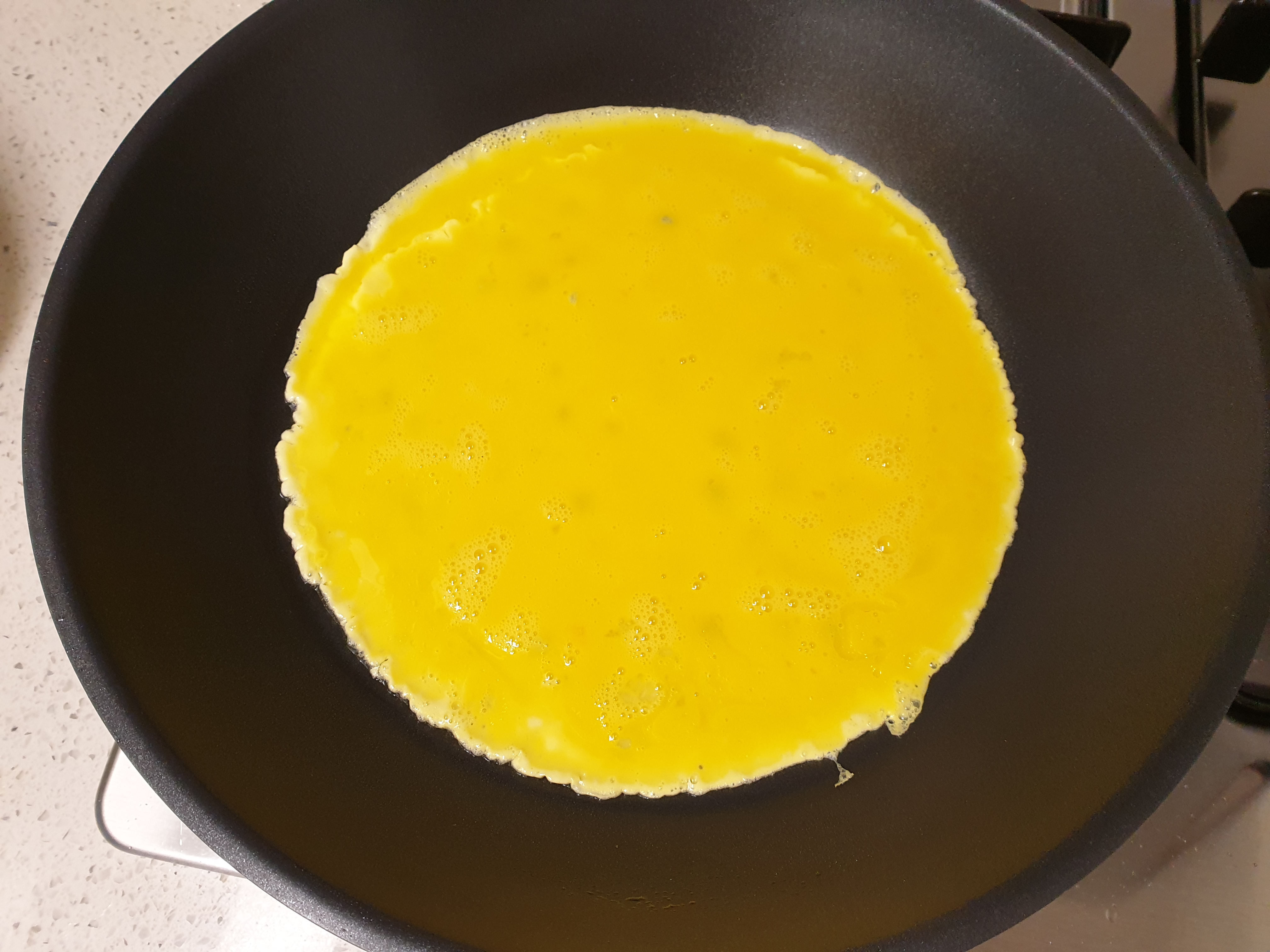계란을 2알 풀어 지단을 만들어 줍니다.