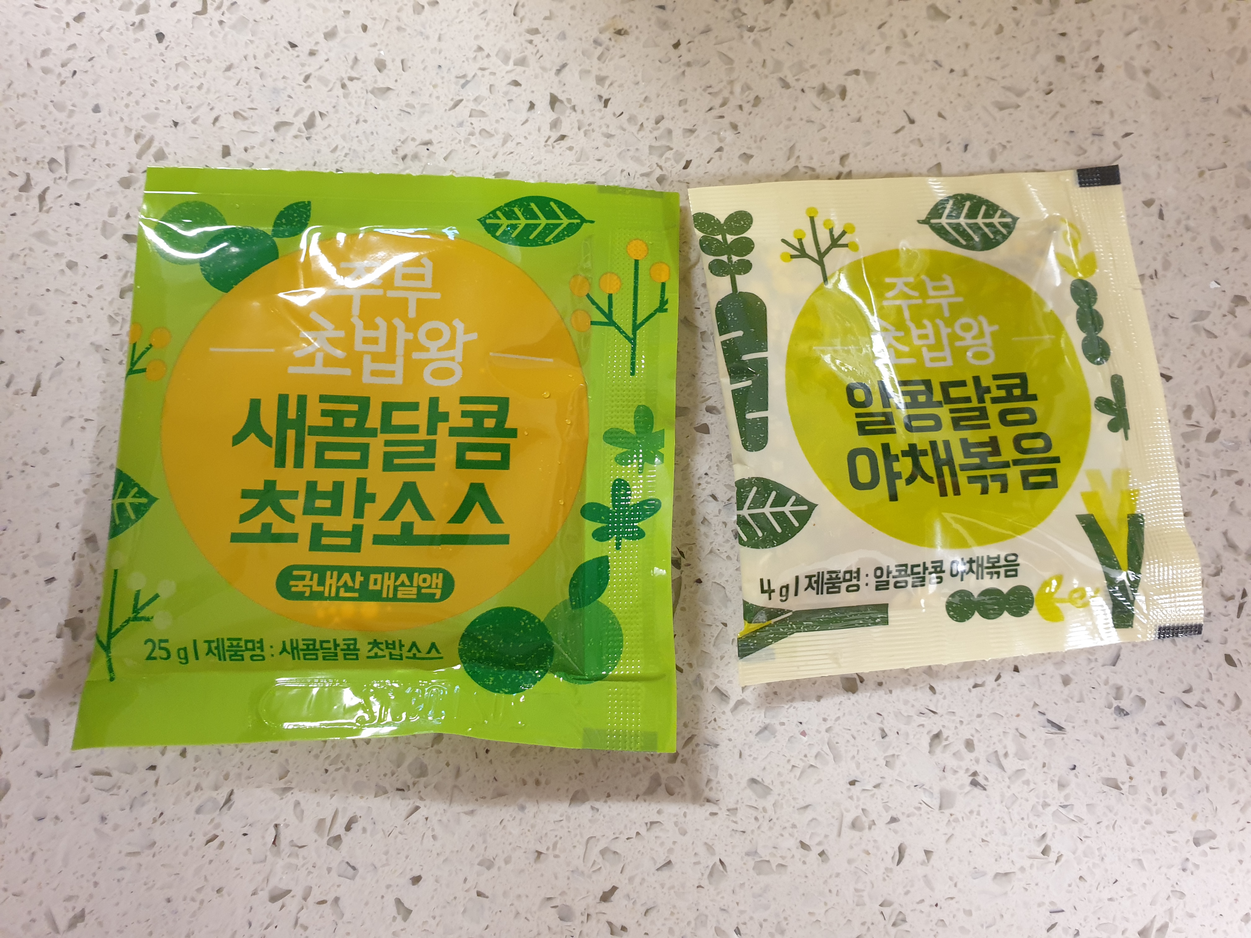 패키지안에 들어있는 초밥 소스와 야채 볶음을 같이 넣어준 뒤