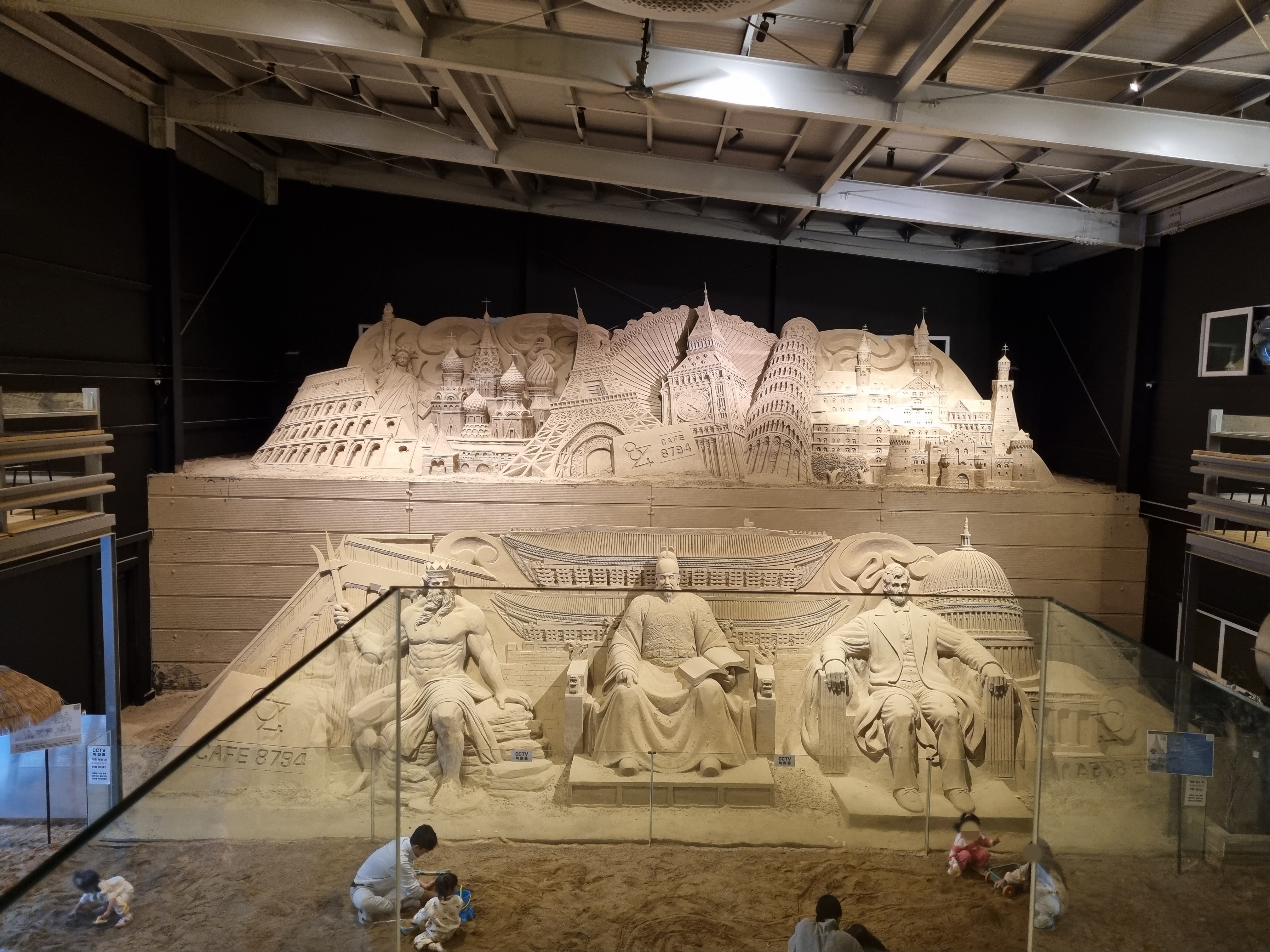모래장 뒤로 거대하게 전시되어있는 작품은 최지훈 작가님의 작품으로 모래와 물로만 만들어졌다고 합니다.