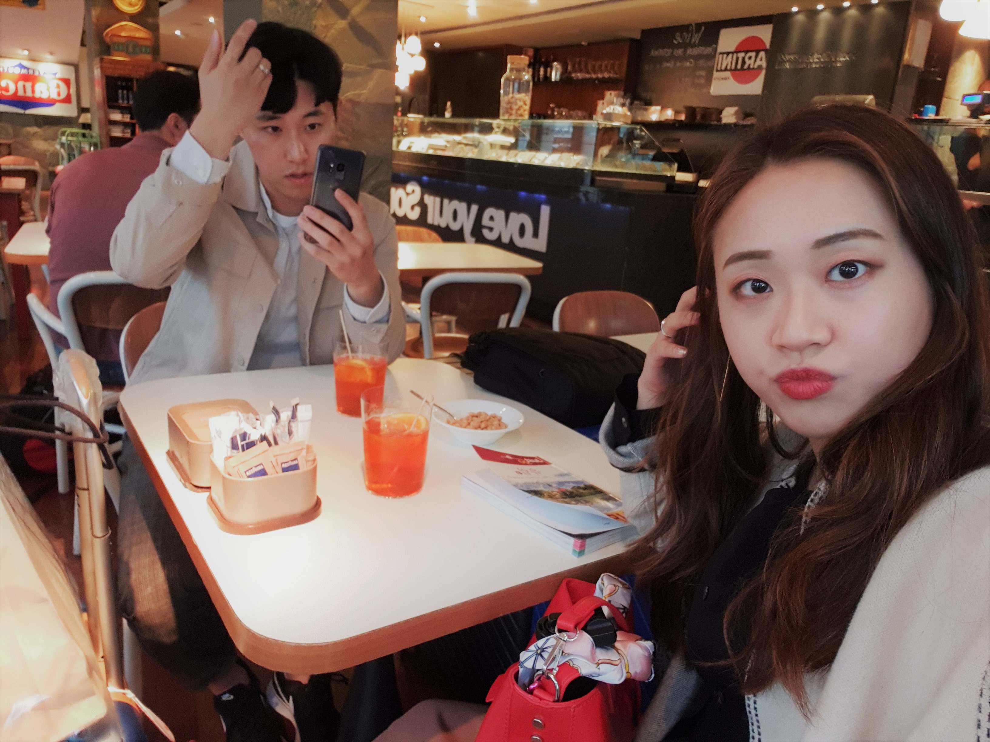호텔에 있는 레스토랑에서 스프리츠를 마시며 기차 시간을 기다리기로 했다.