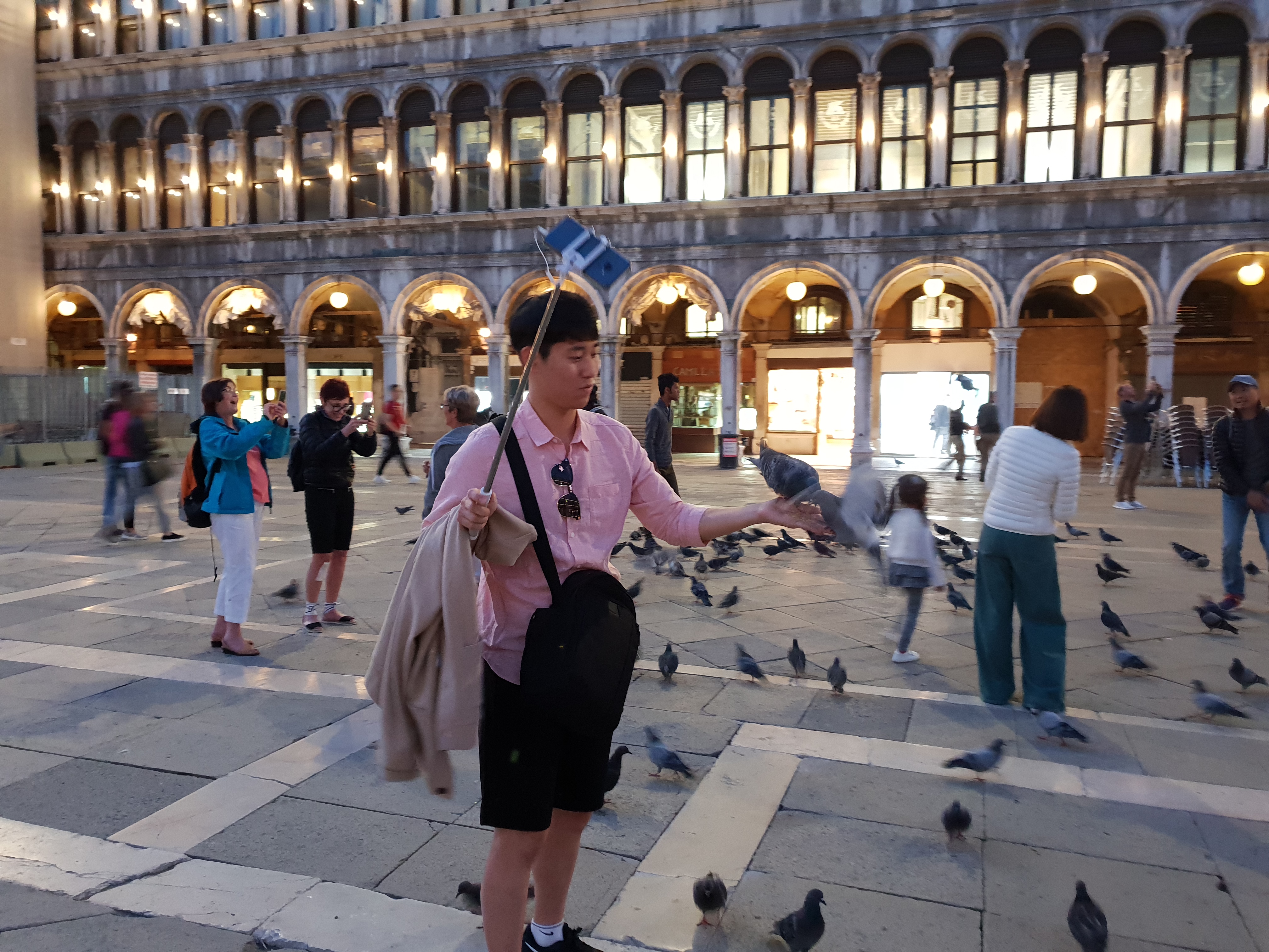 광장 한쪽에 비둘기가 엄청 많이 있었는데 그게 신기해서 사진을 찍으려고 다가갔다.