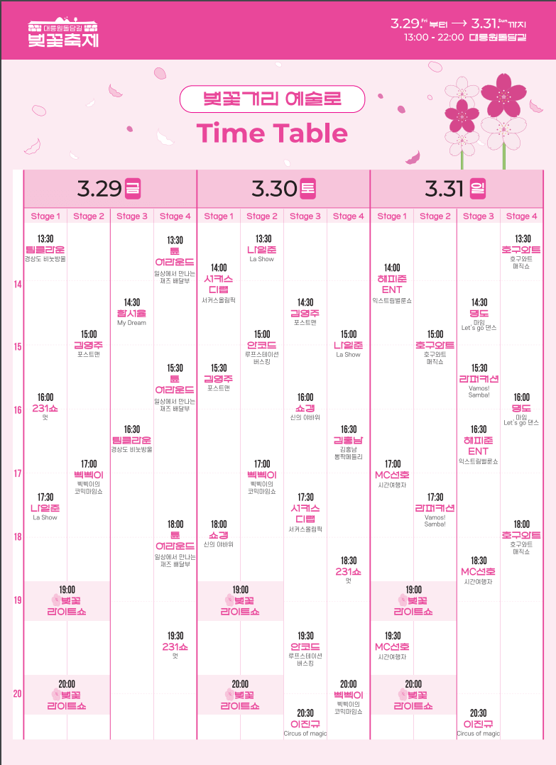 벚꽃코인 사용처와 벚꽃거리예술로 공연, 벚꽃라이트쇼에 대한 자세한 내용은 아래 홈페이지에서 가이드북을 다운로드하시면 확인하실 수 있습니다.