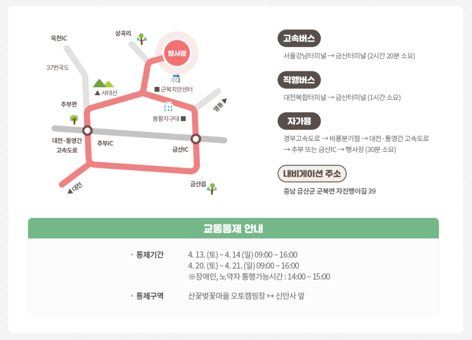 금산 벚꽃축제 가는 길 및 교통통제 안내